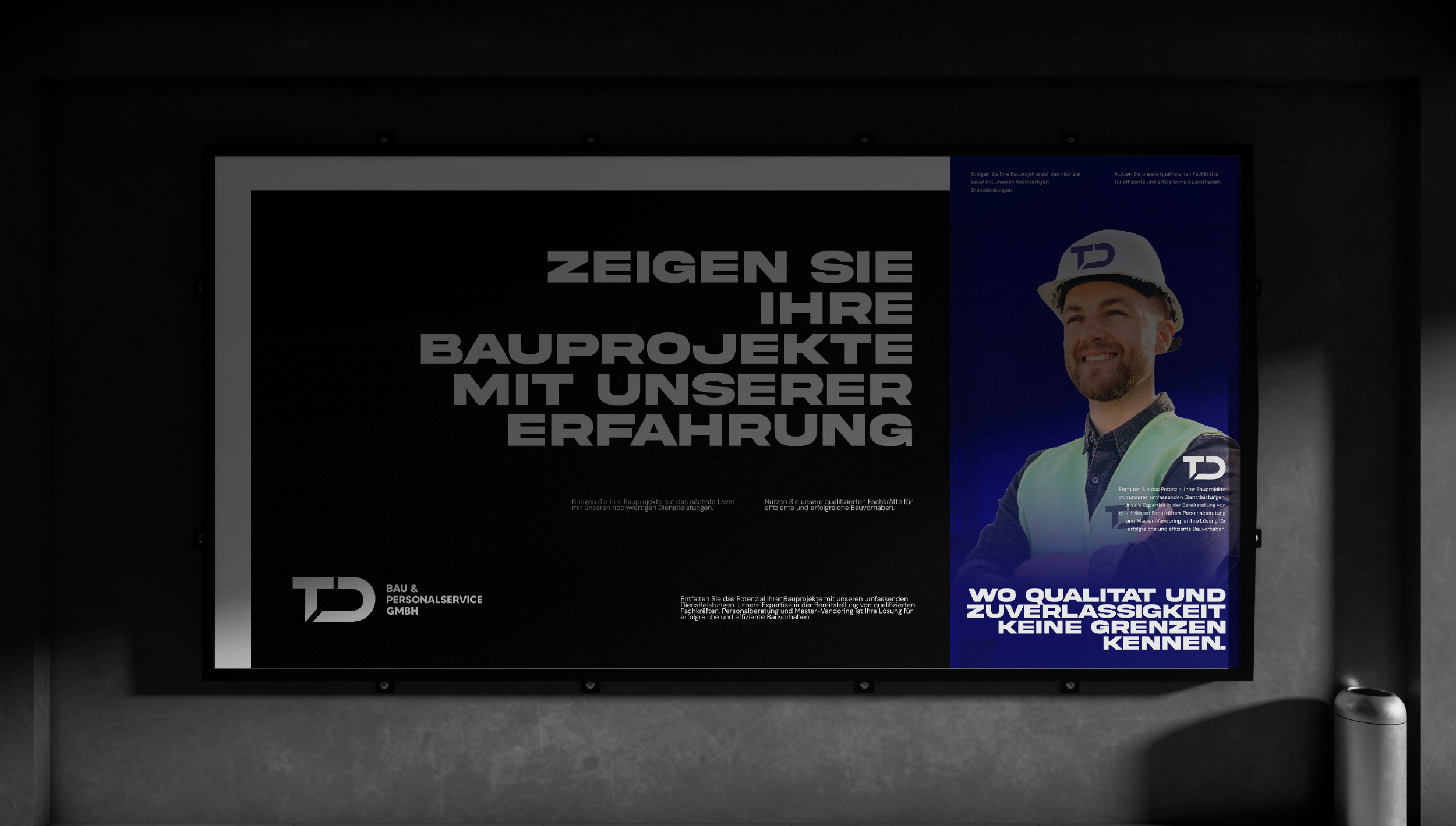 TD Bau’s brand reflects strength, professionalism, and commitment to quality. Our approach to their branding extended beyond the logo and visuals – we focused on tangible elements that represent their identity at every touchpoint. Starting with the branded seating for events and meetings, we emphasized the idea that TD Bau is present, supportive, and united in every project environment.