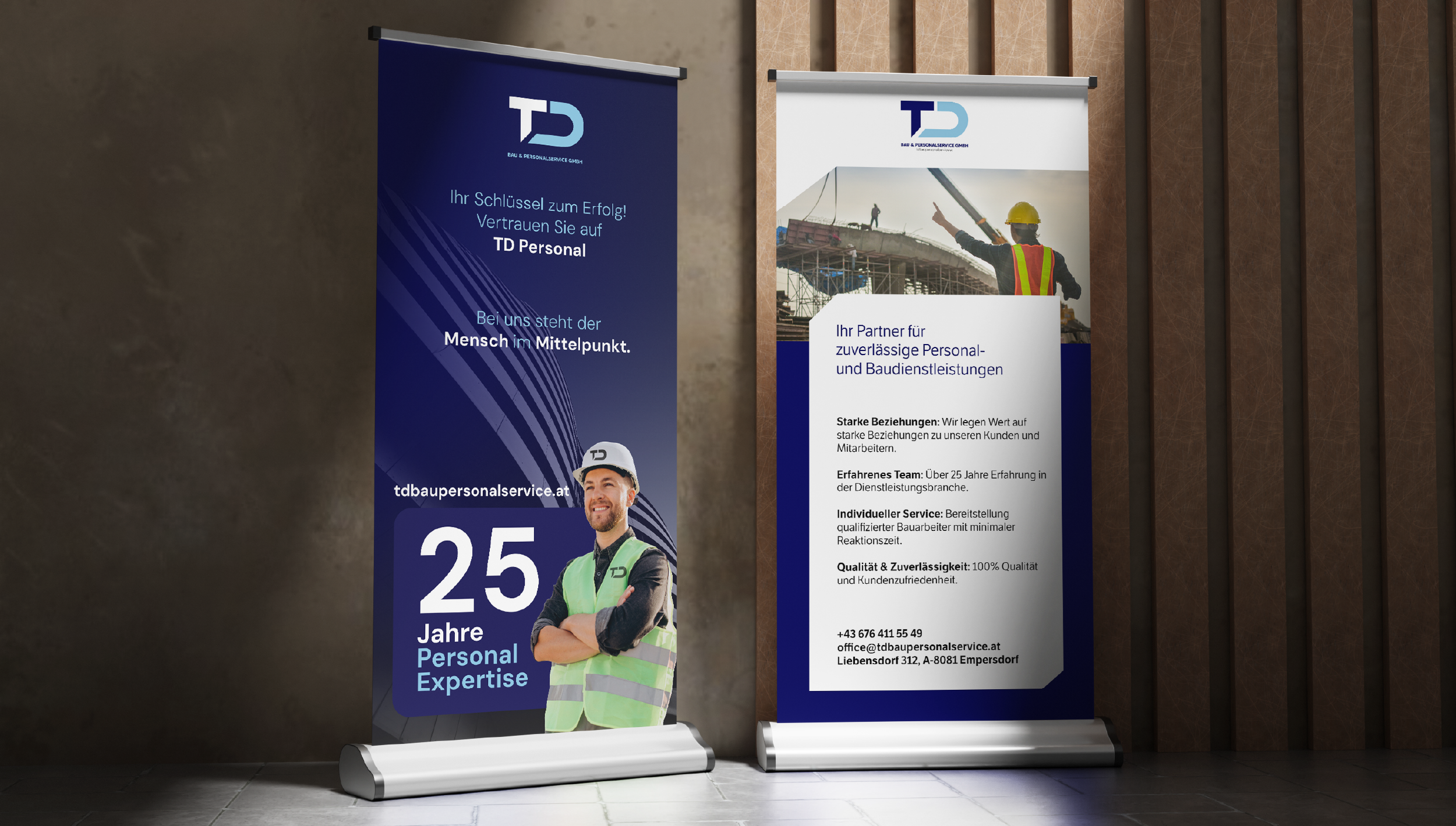 We extended the branding efforts to on-site materials such as banners, tote bags, and informational stands. These items aren’t just functional; they create a recognizable, trustworthy presence for TD Bau in any environment. Each item serves as a reminder of their mission and commitment to their clients and partners, bridging the gap between TD Bau’s brand promise and their physical presence on-site.